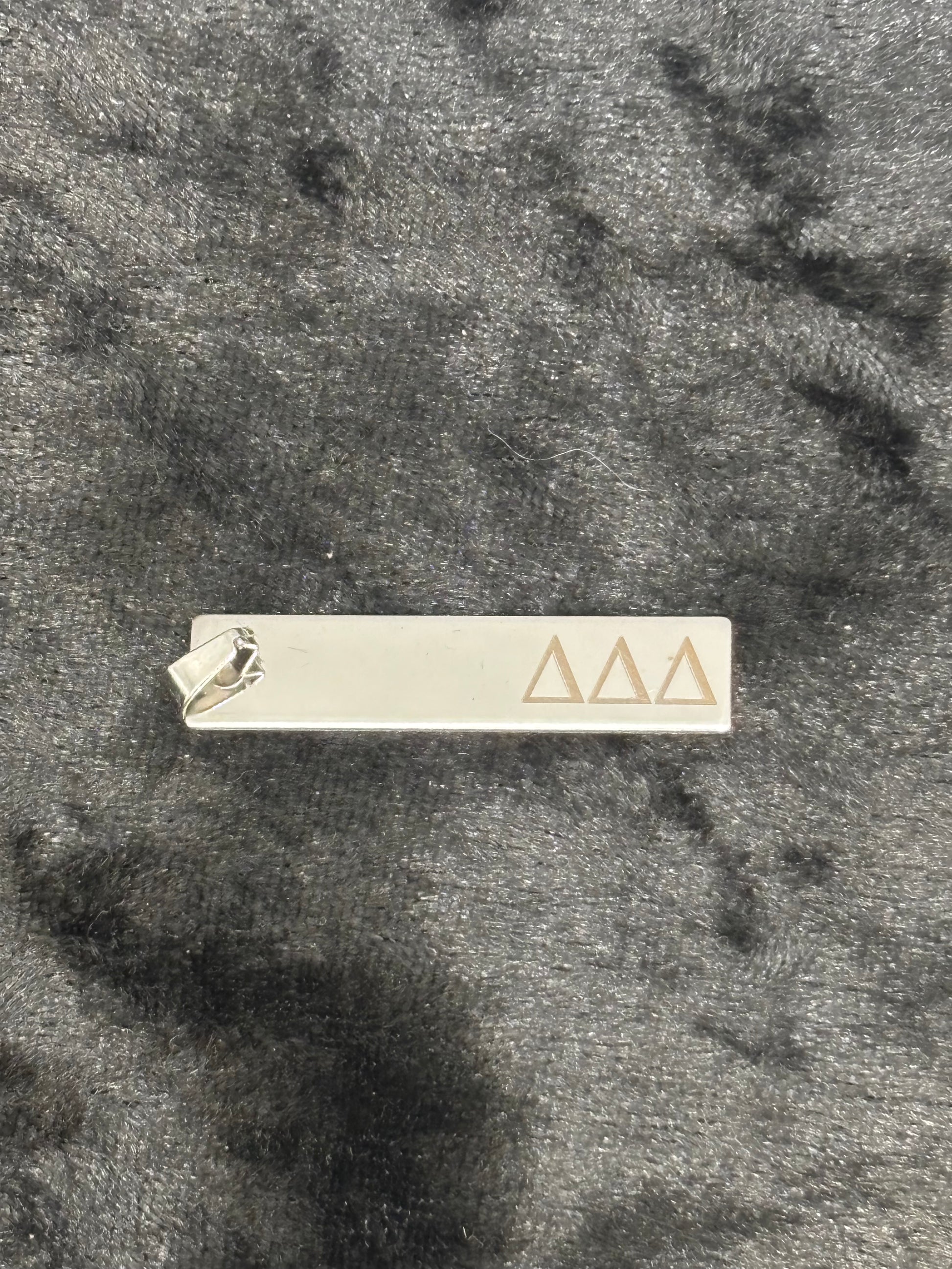 Each pendant features a precision laser-marked Delta Delta Delta design, offering a crisp, permanent finish that will never fade — just like your sisterhood.