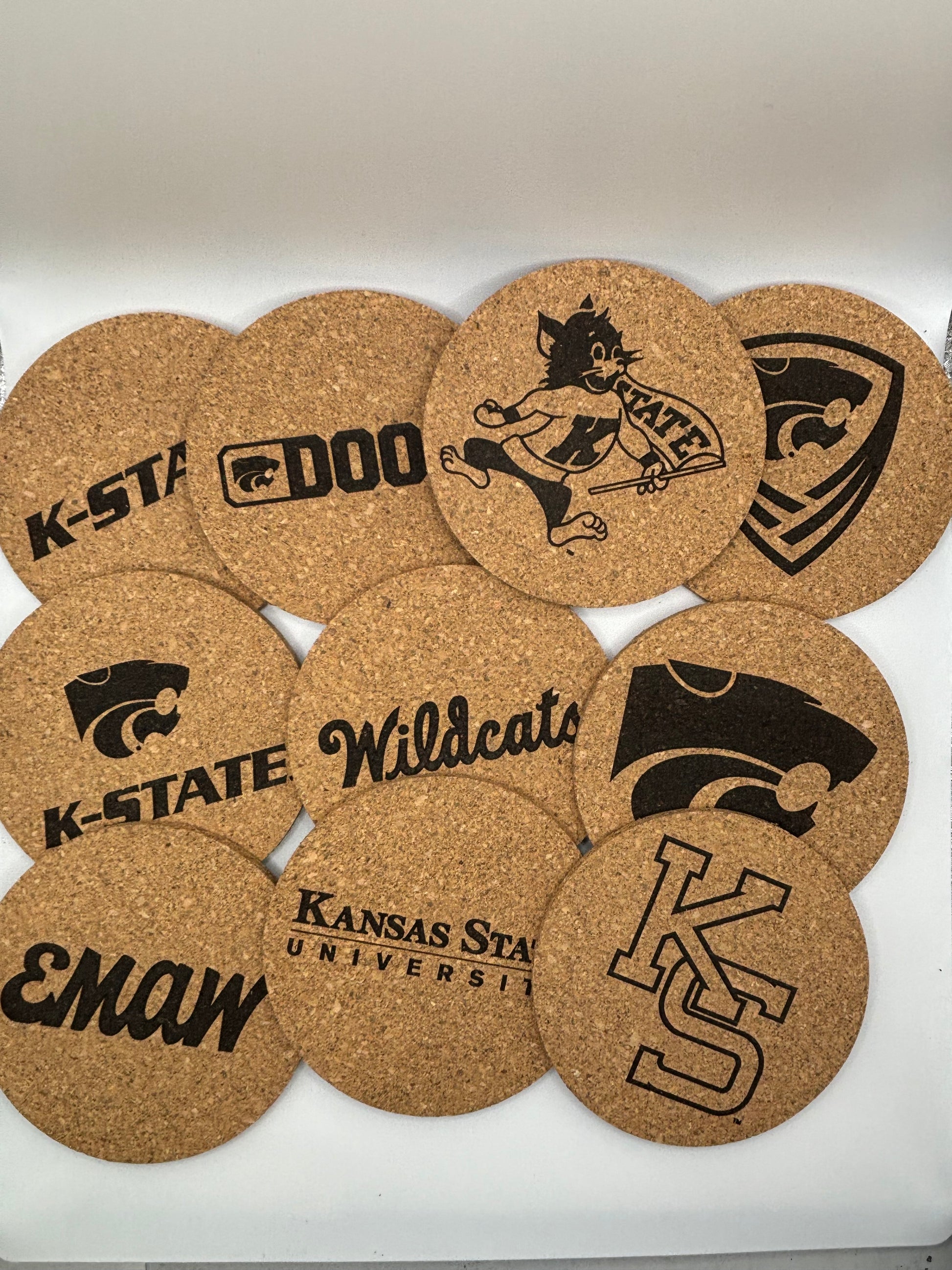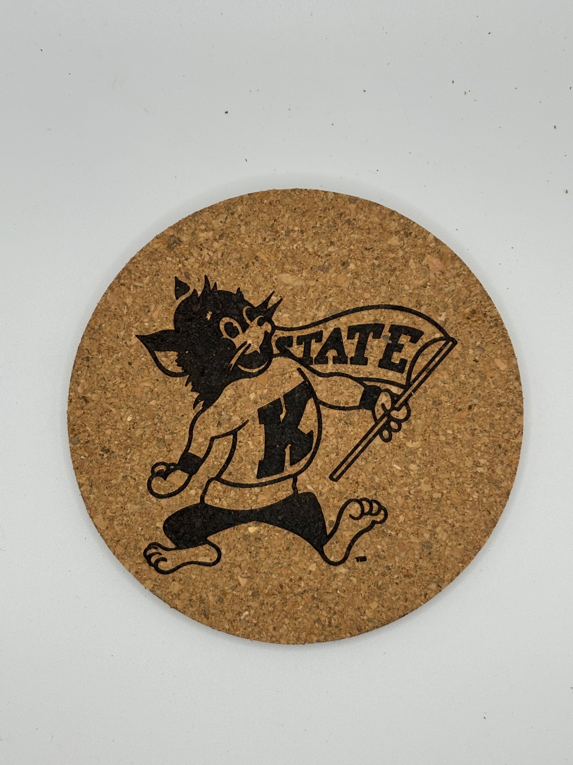 Elevate your game day or home décor with this pack of 4 K-State Cork Coasters! Each coaster measures 4 inches in diameter, offering ample space for your drinks while protecting your furniture from spills and stains. Made from premium cork, these coasters are laser engraved with the iconic K-State logo, ensuring a clean, sharp design that will last for years.