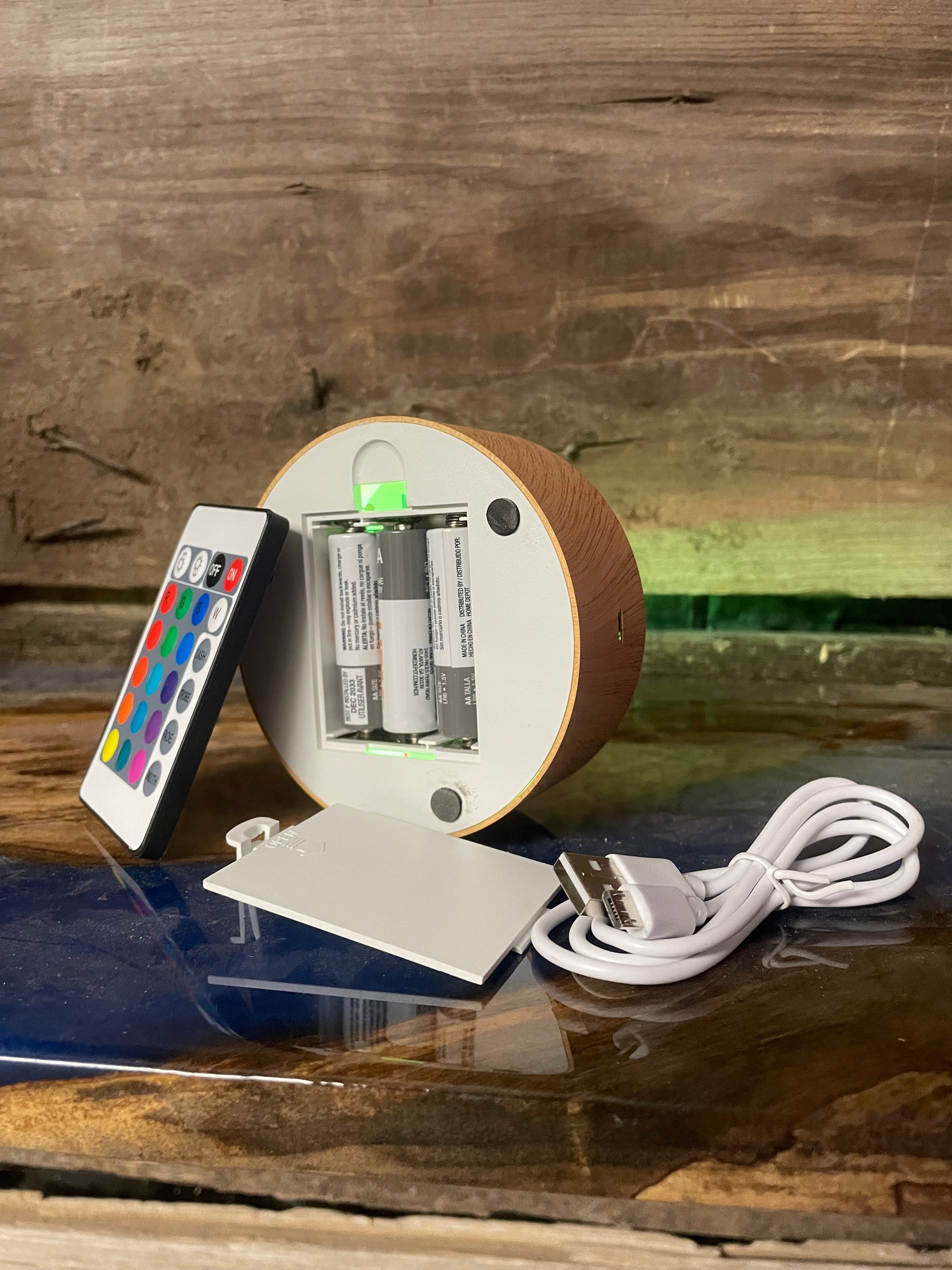 the led base has the option to be plugged in, or ran off of 3 (AAA) Batteries.
