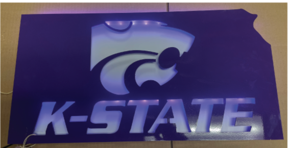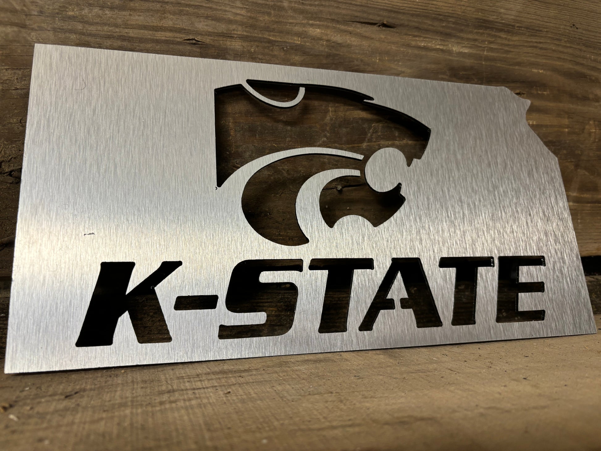 Kansas Outline with K-State and Power Cat LED Metal Sign