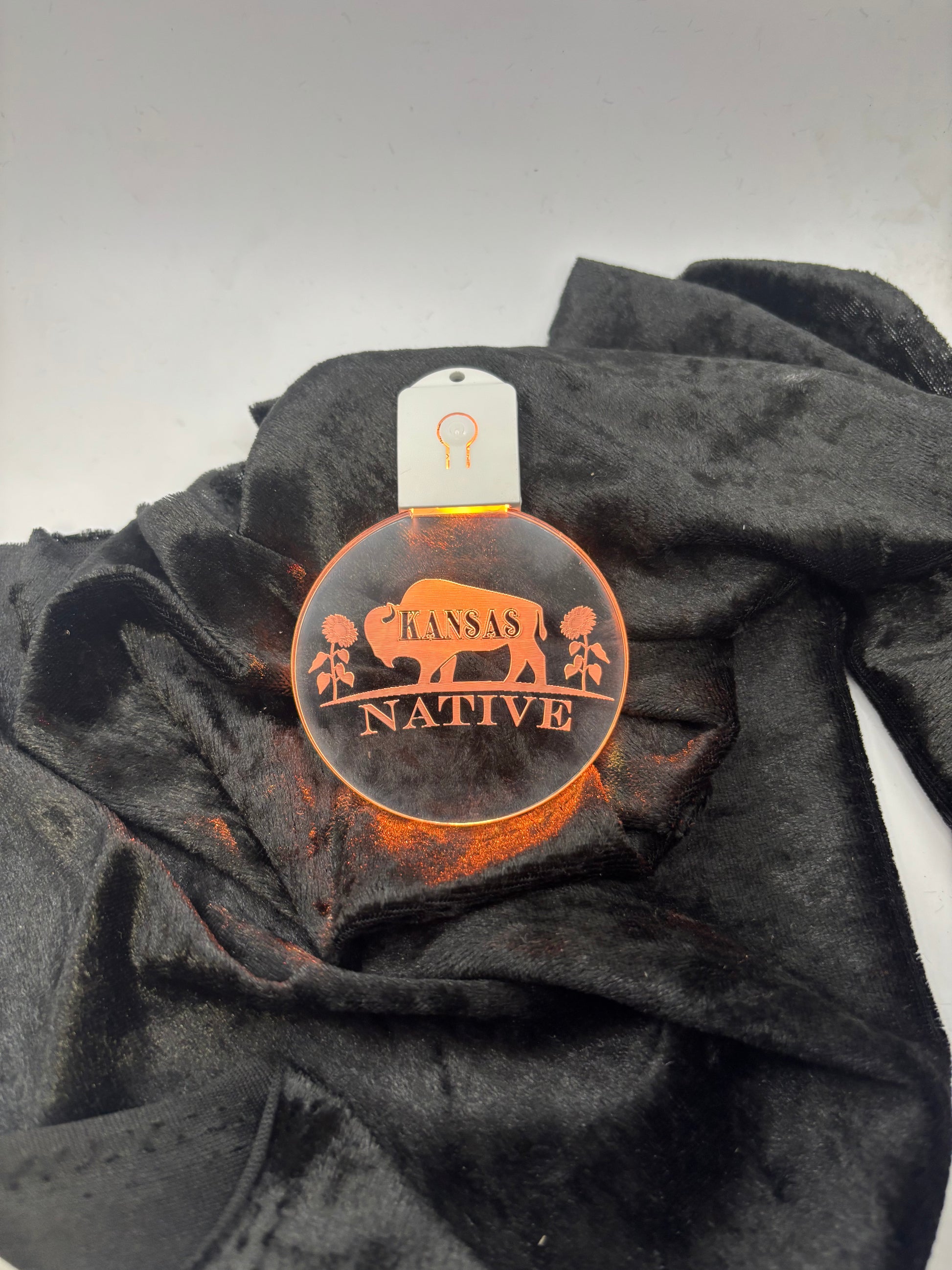 Add some magic to your holiday décor with this laser engraved acrylic Christmas ornament that lights up with rotating LED colors! The elegant engraving of your favorite Kansas images glows beautifully as the LED light cycles through vibrant colors. This glowing ornament adds warmth, cheer, and a little holiday magic to any space.