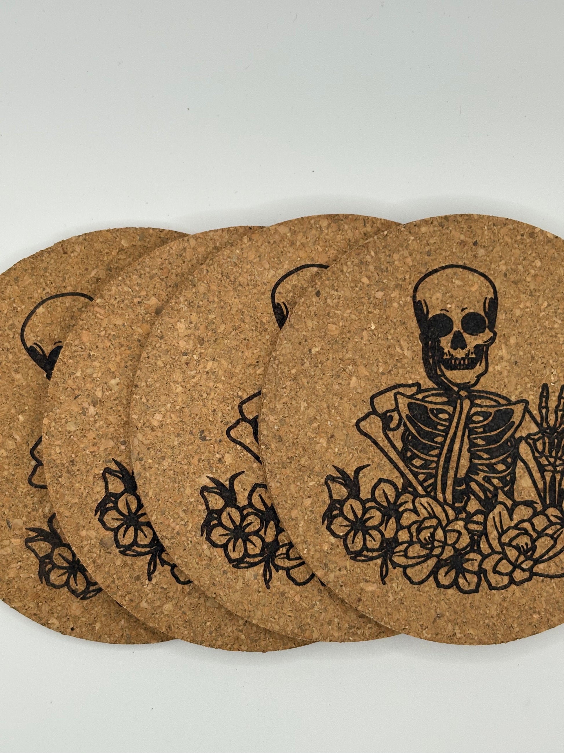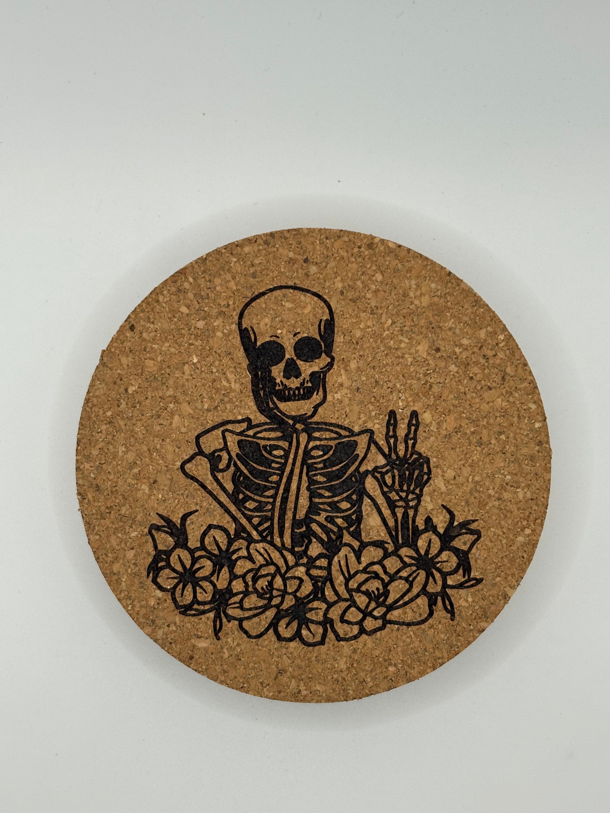 Skelly Peace Sign Cork Coasters (Set of 4)