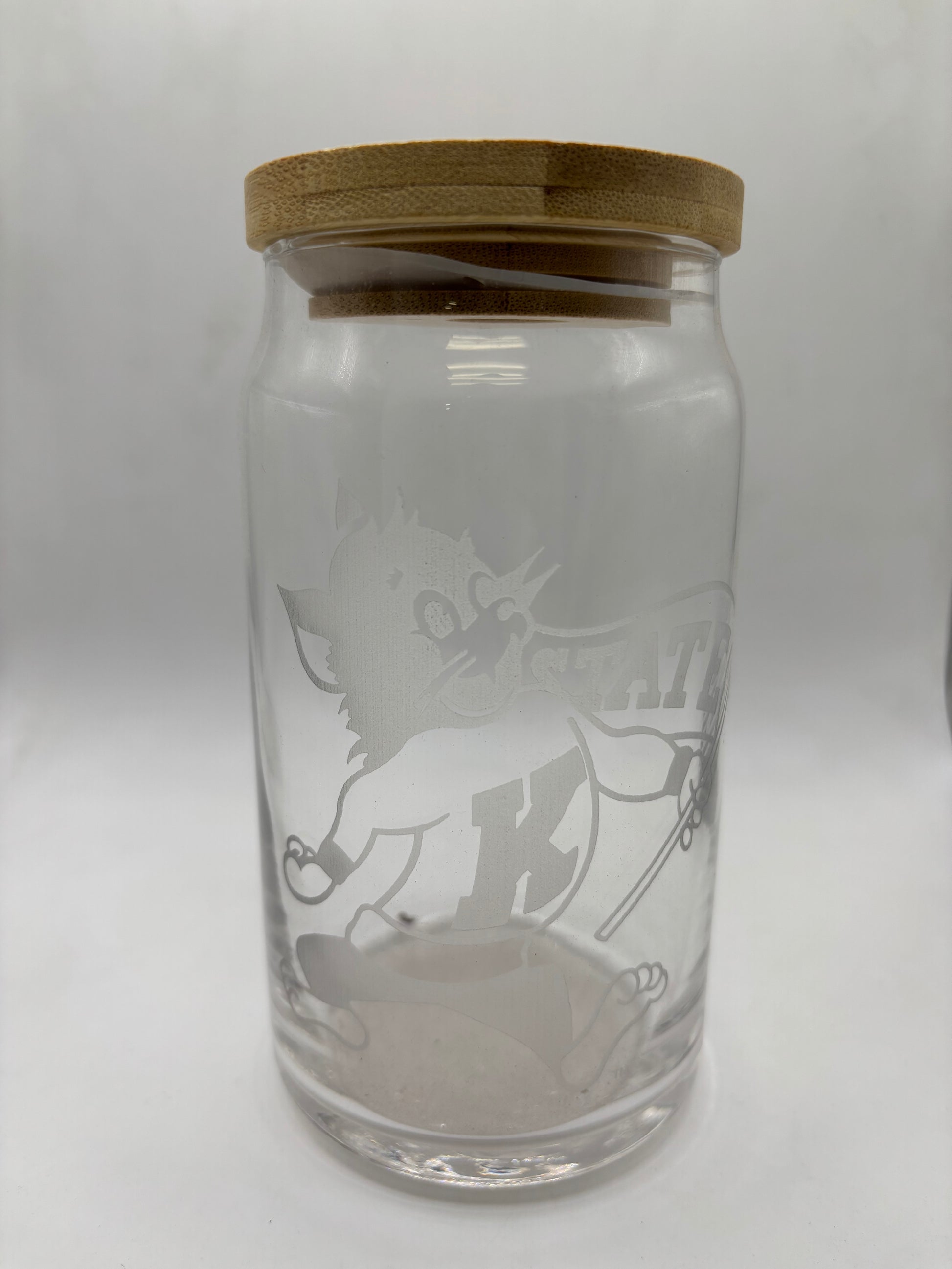 K-State Willie the Wildcat on Rolled lip 16oz Glass