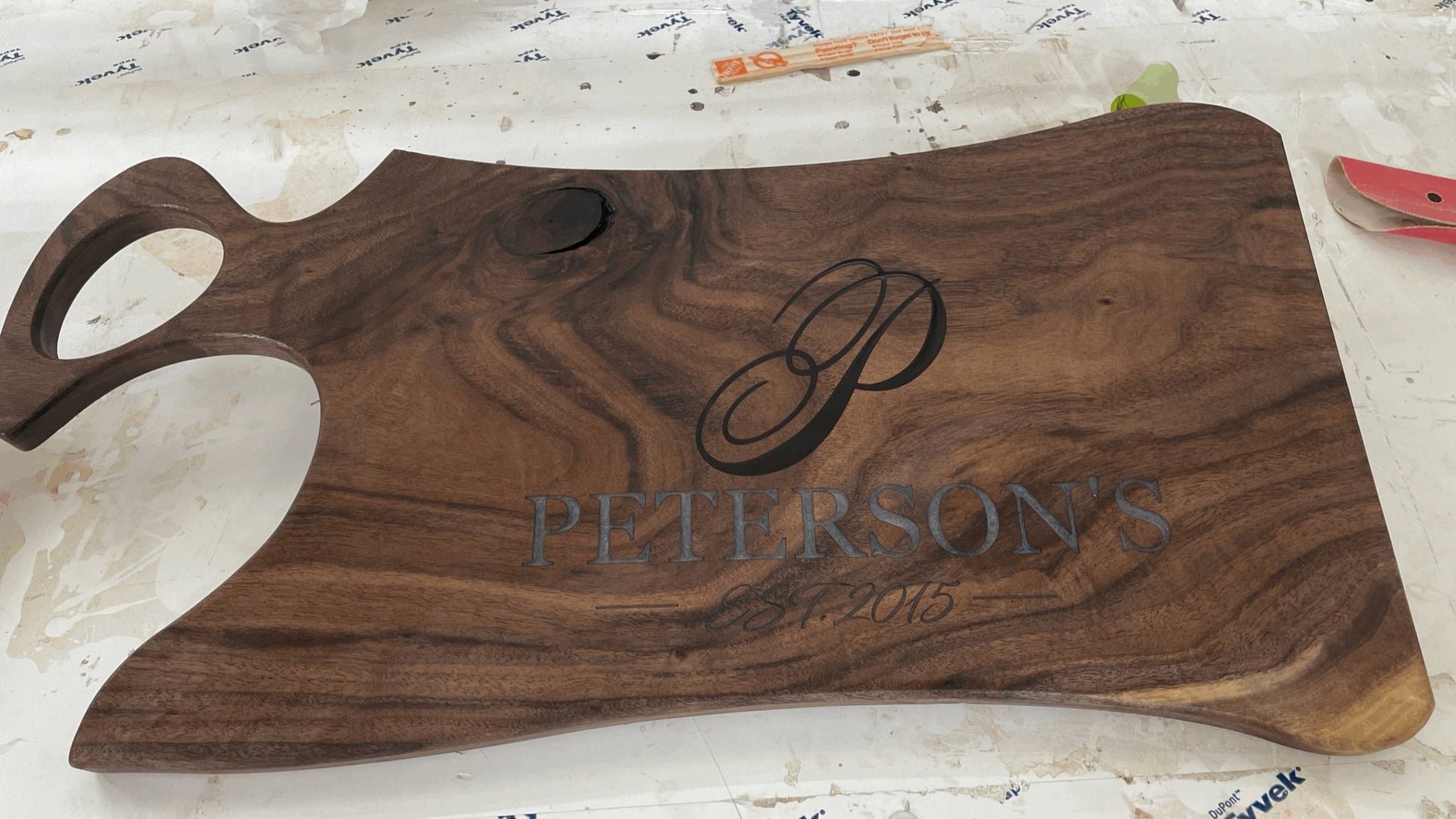 personalized walnut charcuterie board. average size of 18”x10”x1”