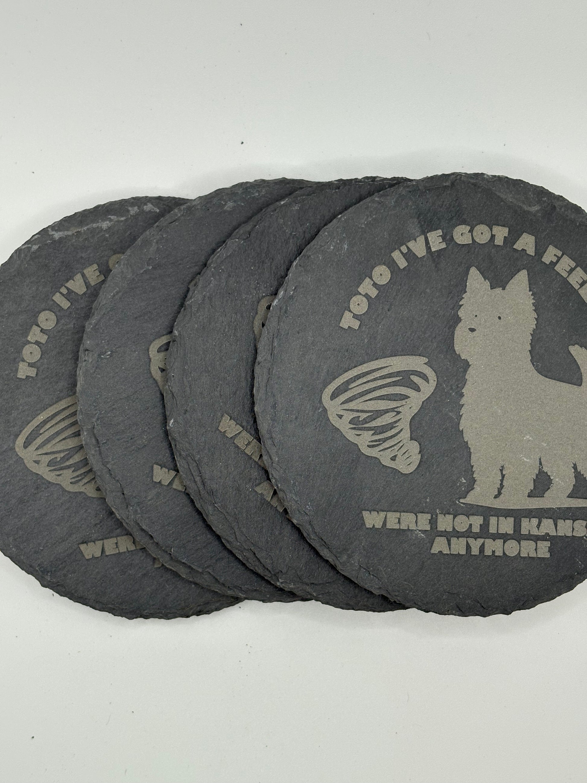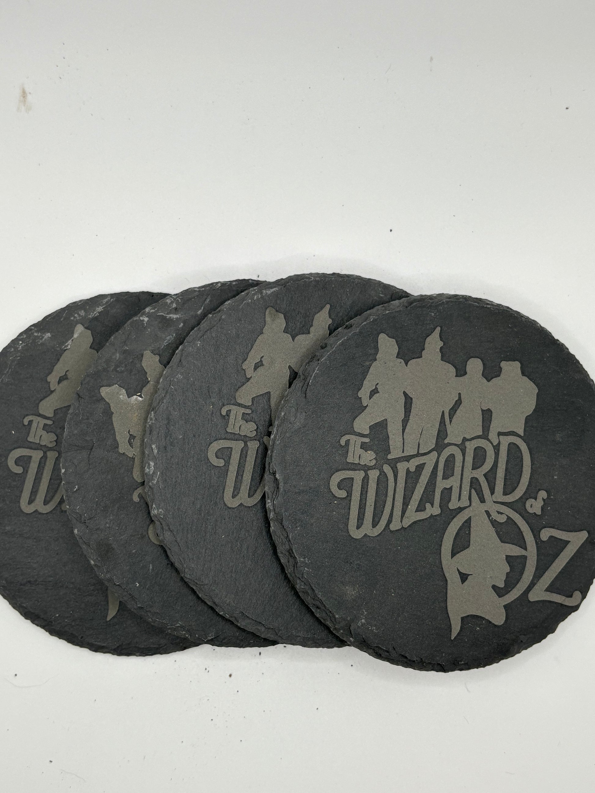Add a touch of magic to your tabletop with our Wizard of Oz-themed Slate Coasters. Each coaster is laser engraved with iconic imagery and quotes from the classic film, capturing the charm and nostalgia of Dorothy’s unforgettable journey down the Yellow Brick Road.
