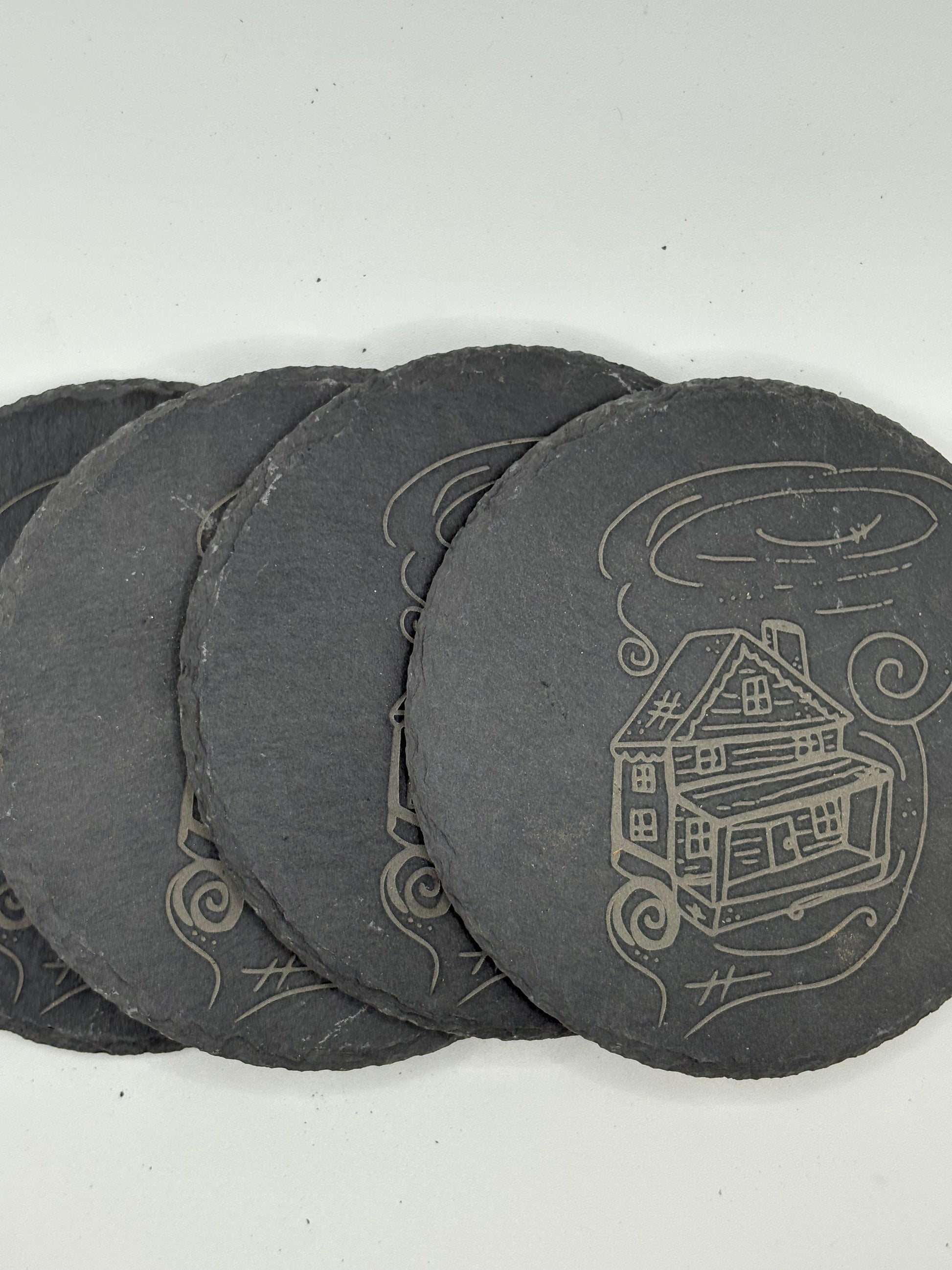 Crafted from natural slate, these coasters are available in 4”x4” square or 4” round options—both with rugged, hand-chiseled edges for a rustic yet refined look. The detailed laser engraving ensures a permanent design that won’t fade, peel, or wash away.